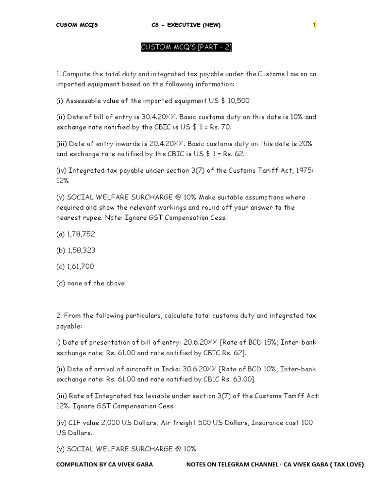 Custom Mcq's For Aug & Dec 2021 Exams by CA Vivek Gaba PDF Customs Chopper Mcq Questions — get type b chopper multiple choice questions (mcq quiz) with answers and detailed solutions. — get choppers multiple choice questions (mcq quiz) with answers and detailed solutions. in this mcq you can learn and practice choppers multiple choice questions to test your knowledge on power electronics. This set of power electronics multiple choice questions & answers. Chopper Mcq Questions.